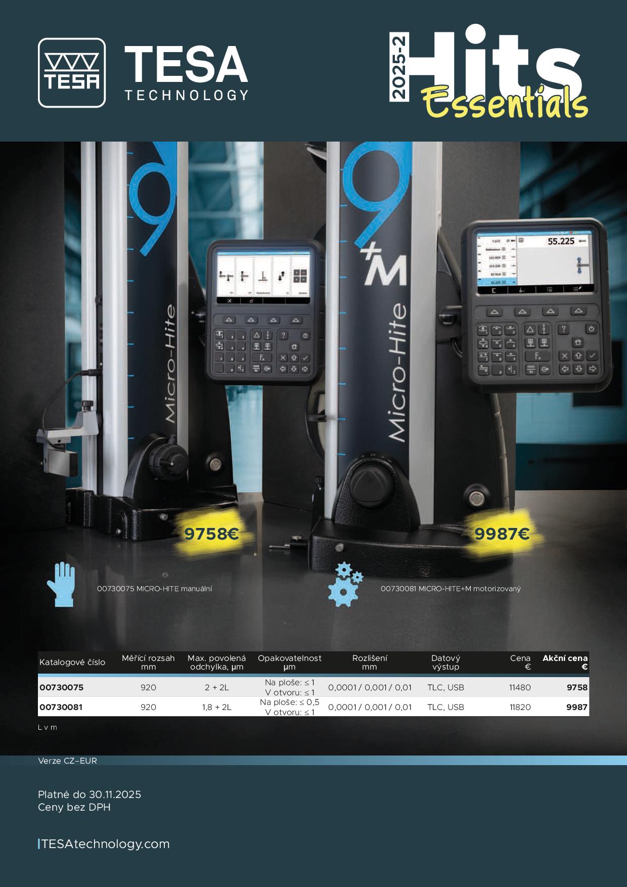 Akční nabídka měřicí techniky TESA HITS 2025-10 platná do 30.11.2025.
