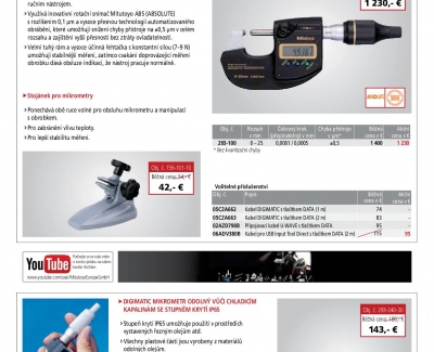Digitální posuvná měřidla ABSOLUTE DIGIMATIC, hloubkoměry, úchylkoměry, digitální třmenové mikrometry DIGIMATIC i analogové mikrometry, digitální výškoměry, třídotekové dutinoměry HOLTEST, pasametry, systém bezdrátového přenosu dat U-WAVE.