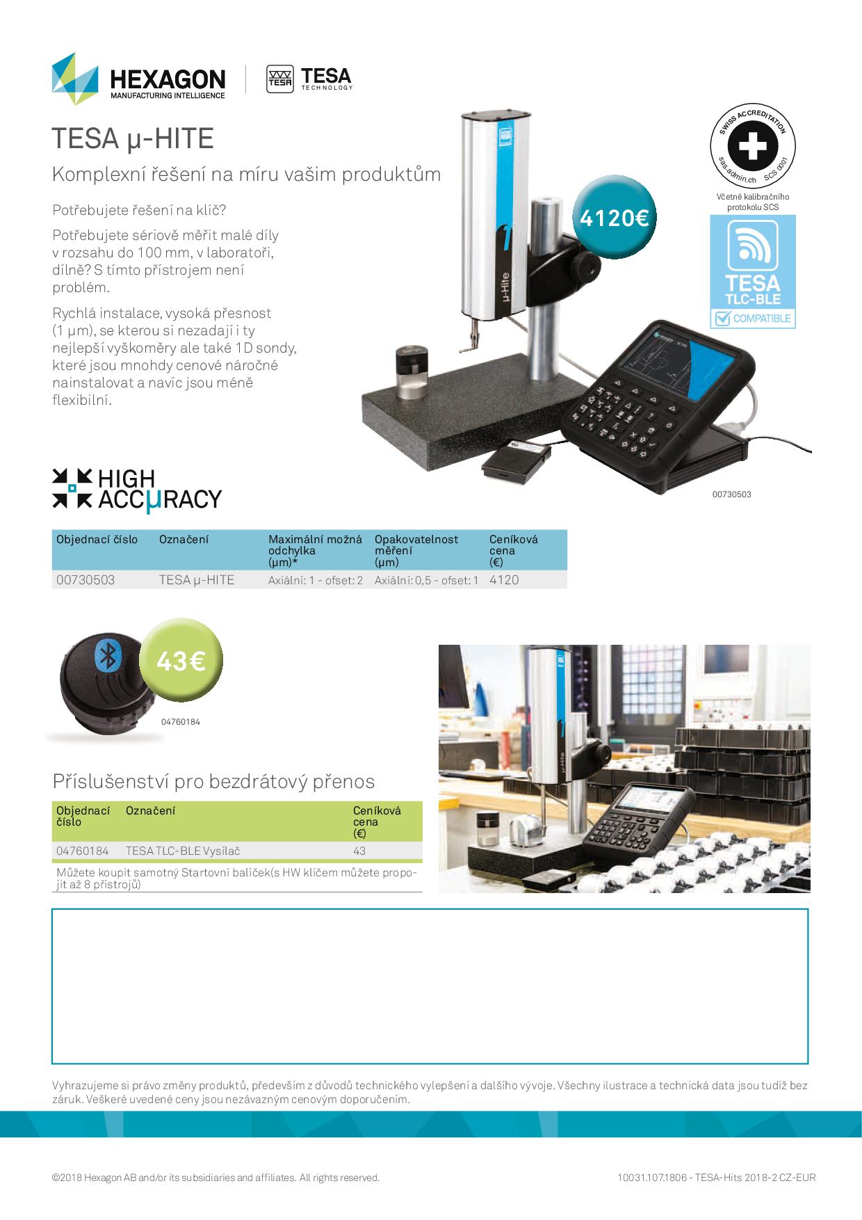 Cenová nabídka měřidel TESA je platná do 31.12.2018.