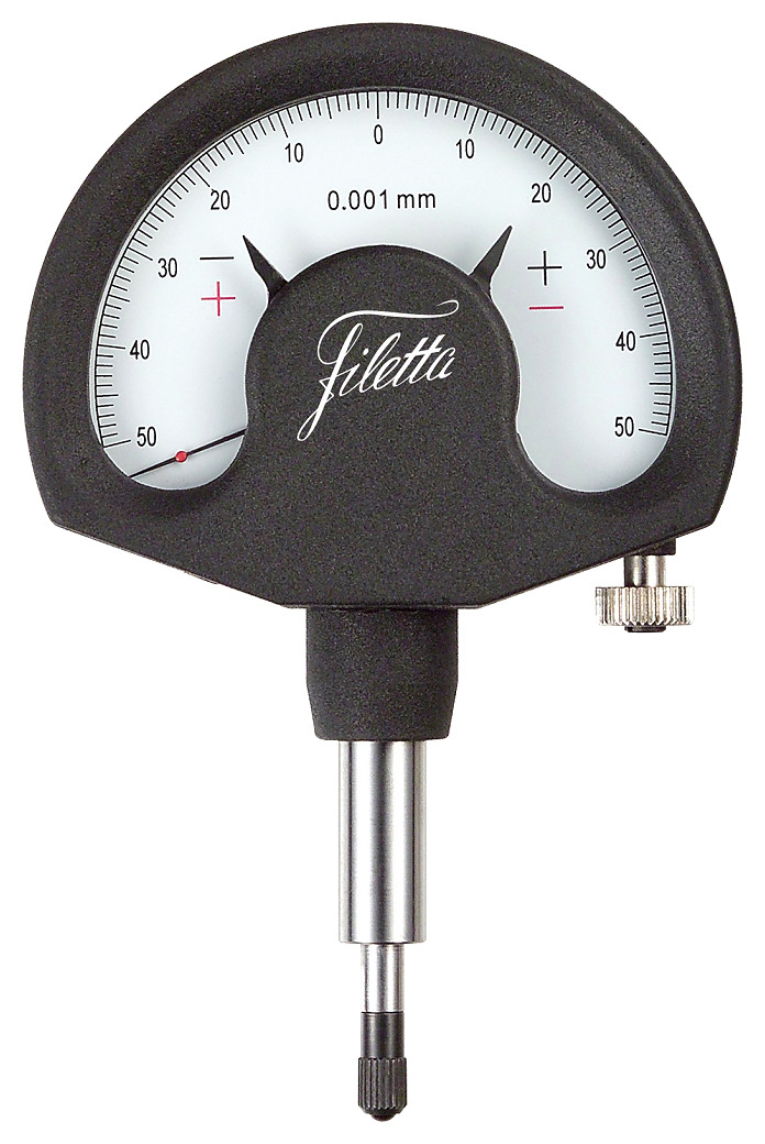 Přesný úchylkoměr je vhodné použít v aplikaci se subitem nebo upnutý ve stojánku. Celý měřicí rozsah je viditelný na číselníku, což umožňuje přehledné odečítání hodnot.