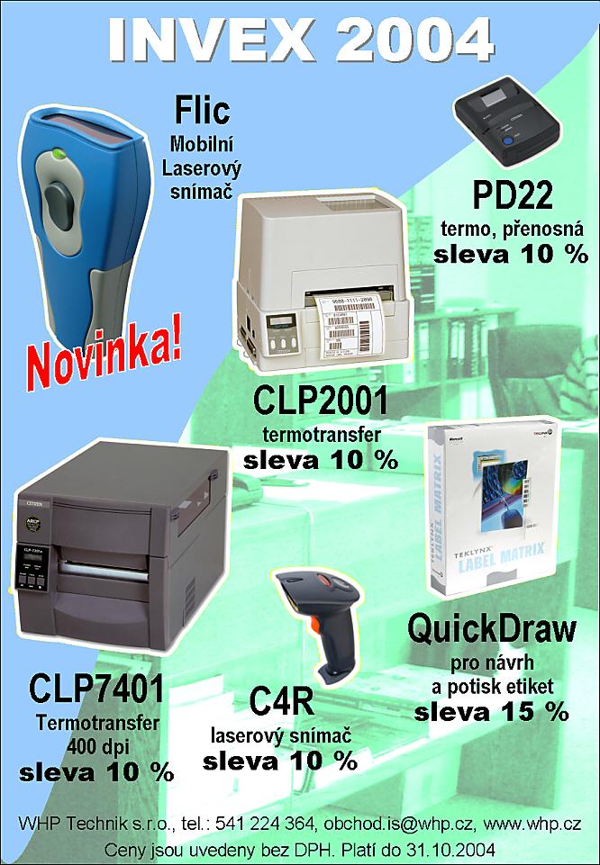 K příležitosti konání veletrhu INVEX 2004 nabízíme zákazníkům v době od 11. do 31. října 2004 cenová zvýhodnění na následující produkty: